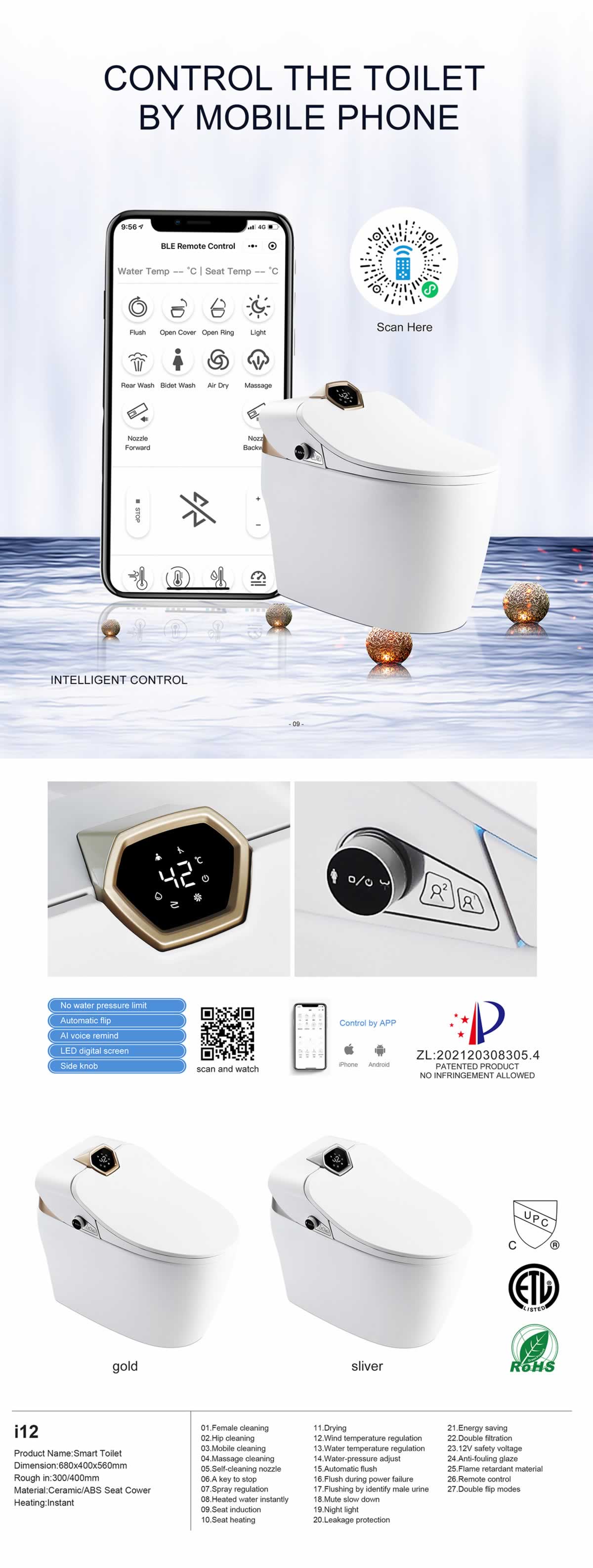 Product Name:Smart ToliletDimension:680x400x560mm
