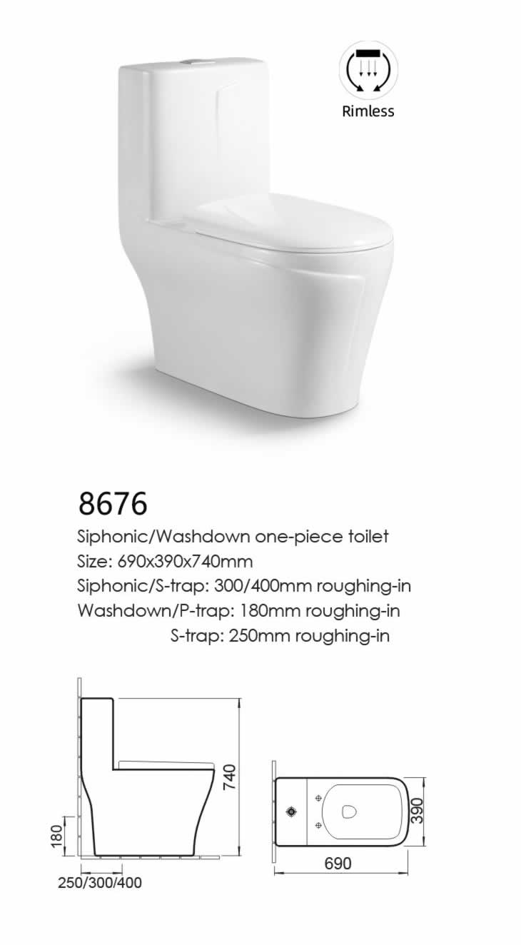 Siphonic/S-trap: 300/400mm roughing-in