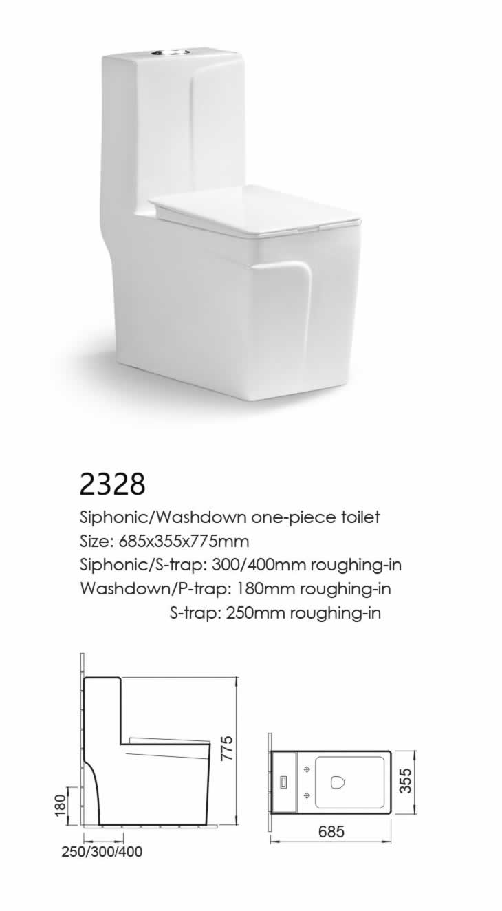 Siphonic/S-trap: 300/400mm roughing-in